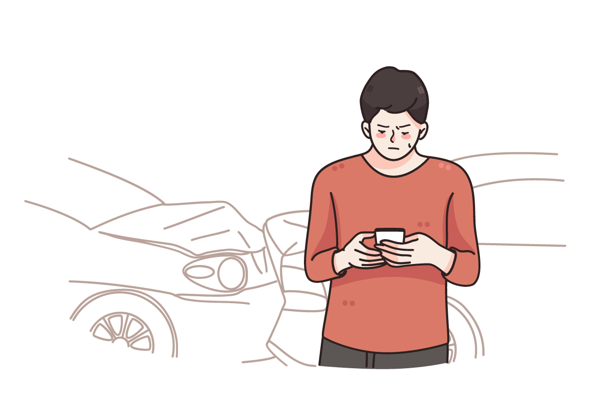 事故に遭われたらまず警察に連絡してください。できるだけ早く加害者とともに現場検証を受けてください。そこで「交通事故の証明」されますのでのちに自賠責保険請求に必要となります。